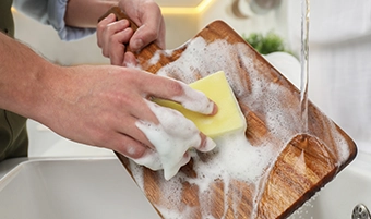 Tip: Avoid soaking your board or putting it in the dishwasher, both can cause warping, splitting, and long-term damage. When washing, regular dish soap is fine, but skip harsh degreasers or antibacterial soaps containing triclosan, as they can damage the wood and leave unwanted residues.